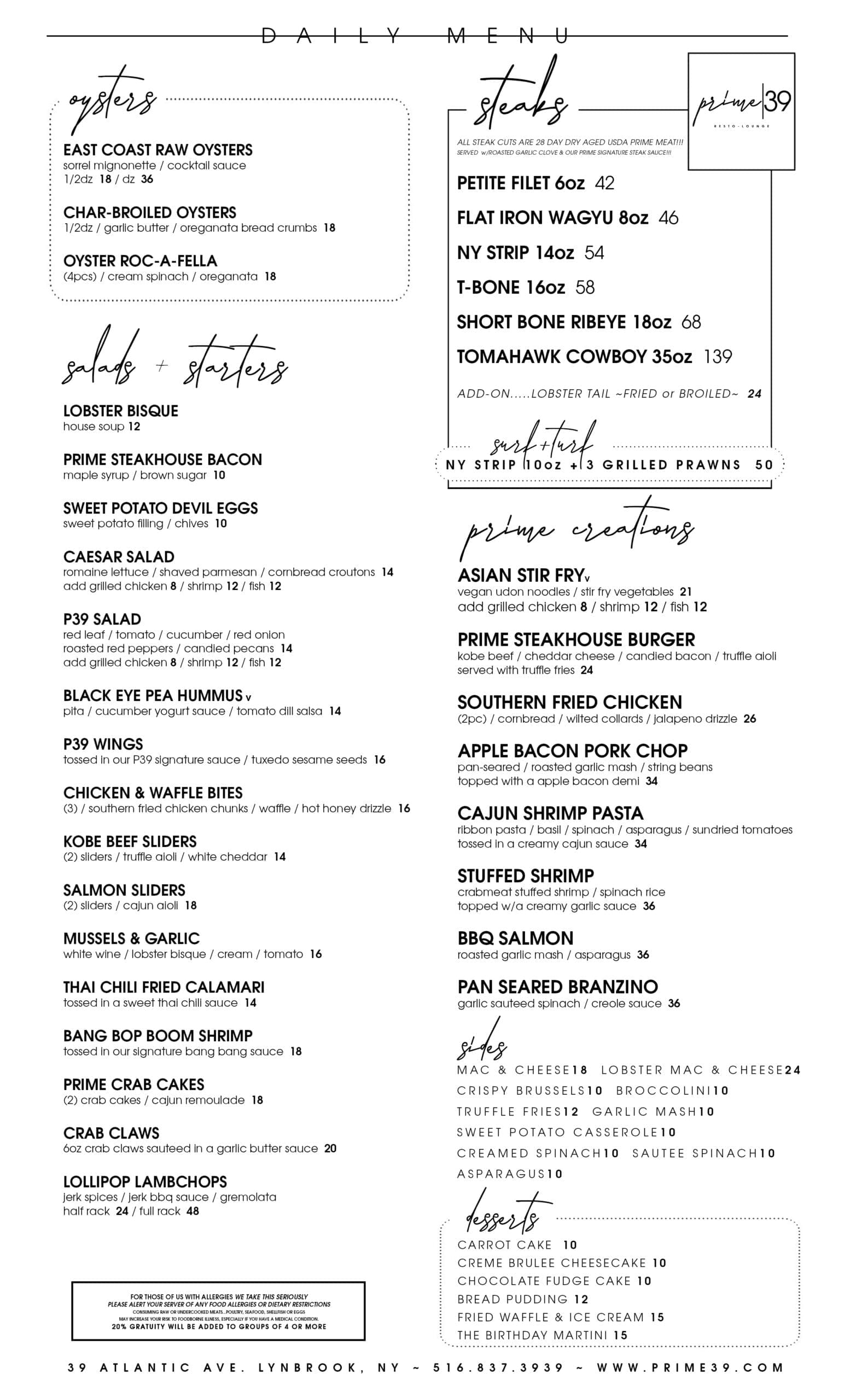 All steaks are 28-day dry-aged USDA Prime, served with roasted garlic clove & prime steak sauce